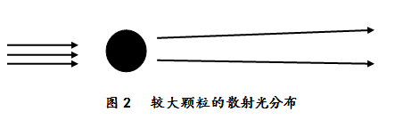 顆粒越細(xì),散射光的角度越小。當(dāng)顆粒幾何尺寸達(dá)到亞微米級別時(shí),大于90度散射角散射光將明顯增強(qiáng)。微小顆粒的散射光甚至在360度范圍內(nèi)都有分布,如圖1所示。
