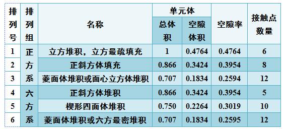 表1等徑球規(guī)則堆積的結(jié)構(gòu)特性